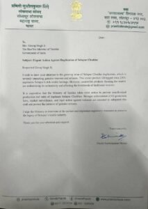 याच बरोबर खासदार प्रणिती शिंदे यांनी सोलापूर चादर उत्पादनास मारक ठरणाऱ्या बनावट चादररीचा मुद्दा देखील मंत्री गिरिराज सिंग यांच्या पुढे मांडला. सोलापूर चादरीच्या अनधिकृत बनावटीकरणामुळे मूळ विणकरांना मोठे आर्थिक नुकसान सहन करावे लागत आहे. सोलापूर चादर ही भौगोलिक निर्देशांक (GI) प्रमाणपत्र प्राप्त असलेली उत्पादने असून, ती स्थानिक विणकरांच्या कौशल्याचे प्रतीक आहे. परंतु सद्या बाजारात बनावट चादरींच्या विक्रीमुळे अस्सल चादर उत्पादक विणकरांना आर्थिक फटका बसत असल्याच्या गोष्टीकडे खासदार शिंदे यांनी लक्ष वेधले.